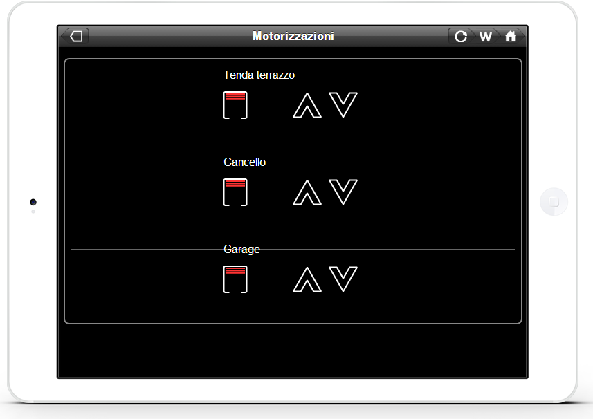 W-Garden ti permette di gestire e programmare tutte le automazioni del tuo giardino a 360 gradi: è semplicissimo impostare attraverso l’intuitiva interfaccia grafica le modalità e i tempi con cui desideri azionare tende e tapparelle. Ovunque tu sia potrai visualizzare lo stato di apertura e chiusura di tutti i serramenti ed eventualmente azionarli: sarà impossibile dimenticare aperto qualsiasi tenda, basculante o cancello.